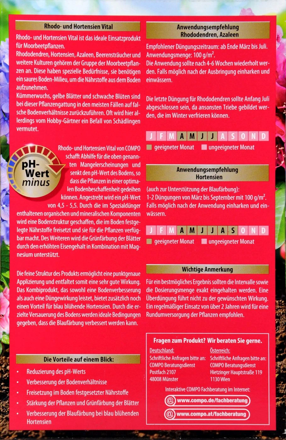 Compo Spezialdünger Rhodo- Und Hortensien Vital - 1 Kg -Gartenbedarf Laden Compo20Spezialduenger20Rhodo 20und20Horstensien20Vital 31830 R01