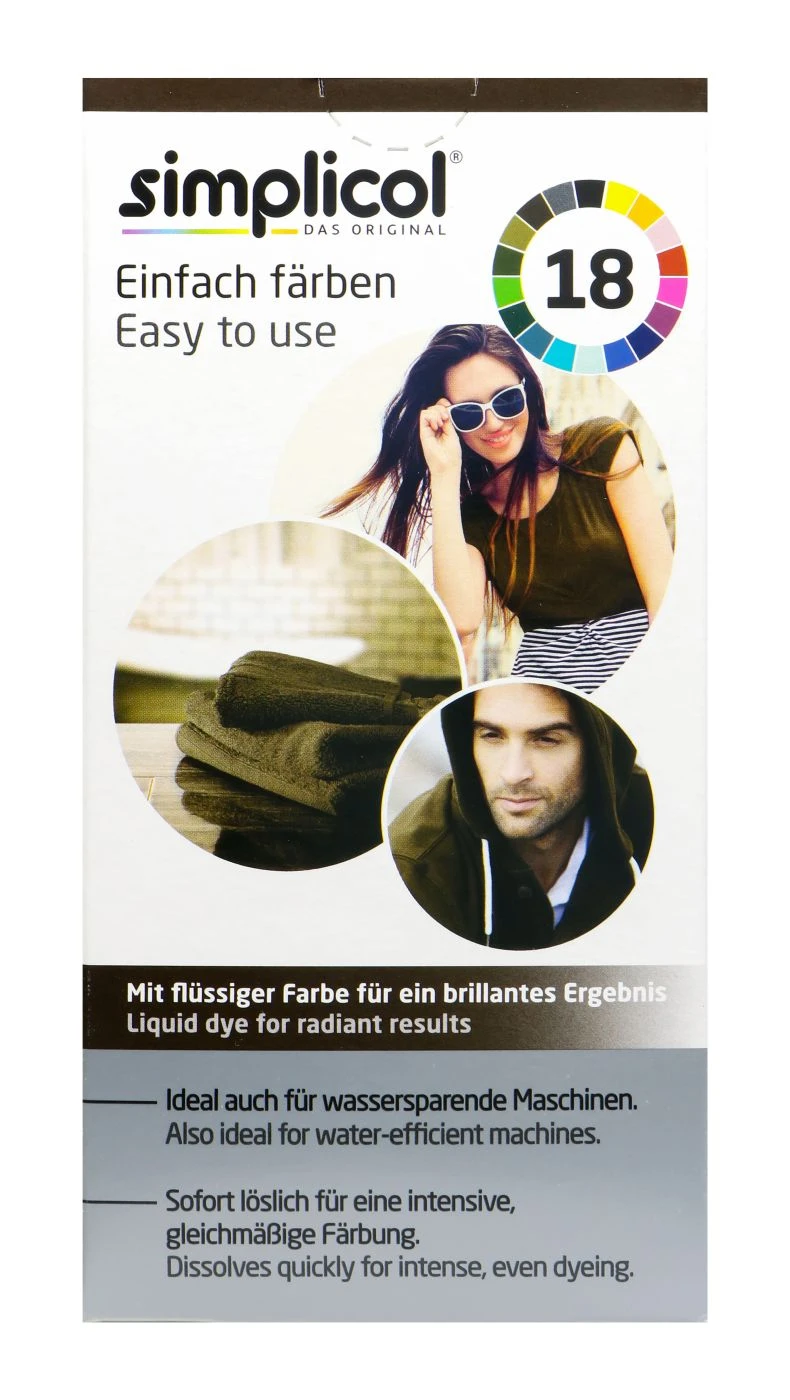 Simplicol Textilfarbe Intensiv in stilvollem Espresso-Braun Farbton überzeugt durch ein perfektes farbintensives Ergebnis. Die Farbe lässt sich immer wieder neu kombinieren und passt je nach Vorliebe ideal zu allen Textilien. Für die Färbung einfach eine Komplettpackung in der Waschmaschine mit den zu färbenden Textilien waschen. Die Textilfarbe dient zum Neufärben, Umfärben und Auffrischen.
