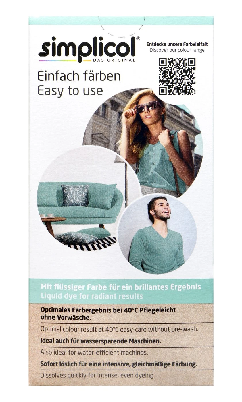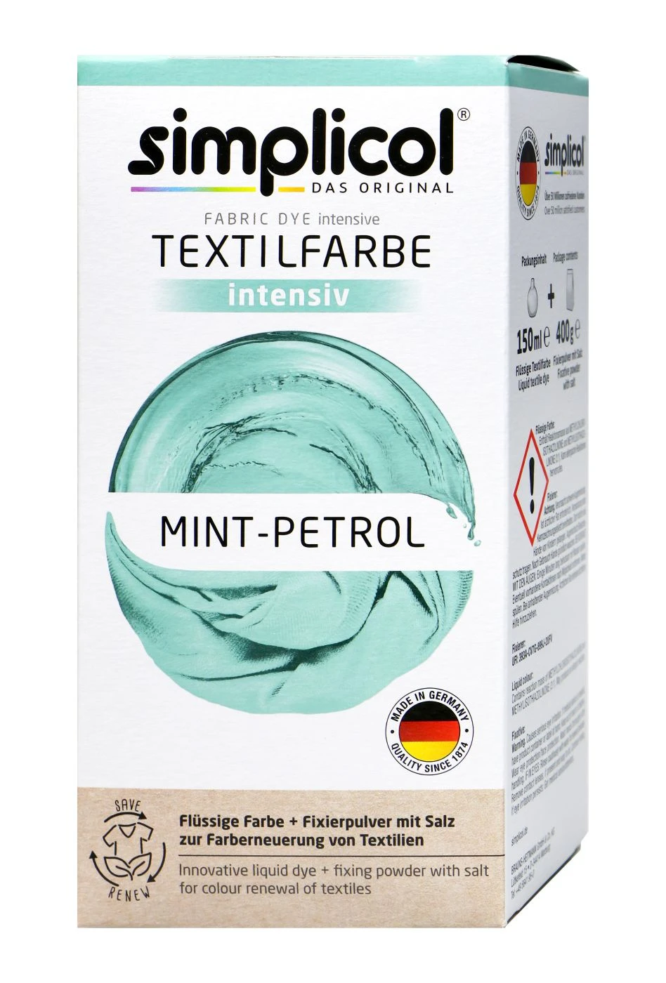 Simplicol Intensiv Mint-Petrol, 1027251, ist eine Textilfarbe zur Anwendung in der Waschmaschine. Ideal für Textilien aus Baumwolle, Viskose, Leinen, sowie Mischgewebe. Nicht geeignet für Synthetics, Wolle und Seide.